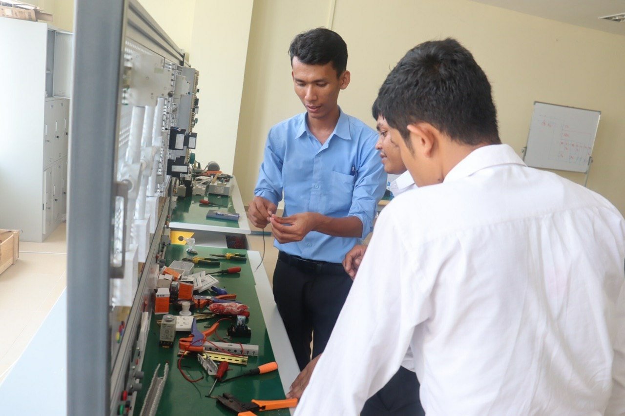 គ. អគ្គិសនី សិក្សាពីការដំឡើងបណ្តាញអគ្គសនីក្នុងអគារ(Wiring) ប្រព័ន្ធបញ្ជាស្វ័យប្រវត្តិ(Automatic Control Systems) សរសេរកម្មវិធីPLC & Sensors ប្រព័ន្ធបញ្ជាម៉ូទ័រអគ្គិសនី DC &AC និងមូលដ្ឋានគ្រឹះគ្រឿងបង្គុំអគ្គិសនី
